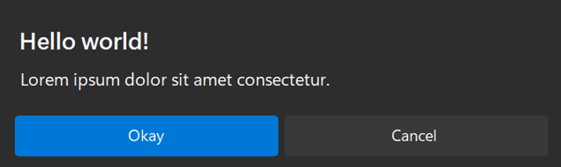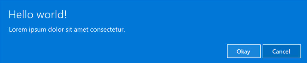 Modern Dialogs is the new de-facto standard suite of modern and highly customizable Windows messaging dialogs supported across all modern Windows Operating Systems (8/8.1, 10, 11+) for .NET applications (and in future other languages such as Python & JavaScript). With support for custom theming, dark/light modes, dynamic DPI screens, support for RTL (Right-To-Left) languages, layout customization, animations and more, Modern Dialogs is set out to improve on visual messaging across all your applications.